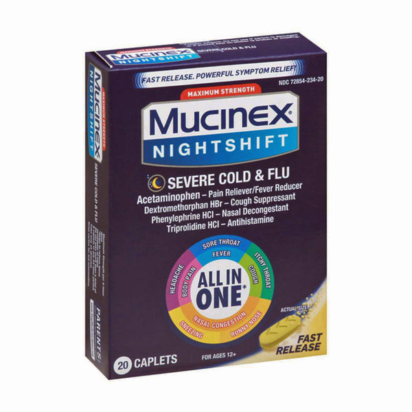 Mucinex Nightshift Severe Cold & Flu Caplets 20 ct