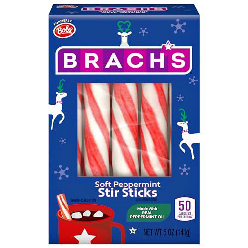 Get your mint fix with Brach's Bob's Soft Mint Candy Peppermint Stir Sticks! Made with real peppermint oil for a refreshing taste, these sticks are perfect for stirring into hot drinks or enjoying as a treat. Each 5oz box contains individually wrapped candies, making them ideal for on-the-go snacking.
