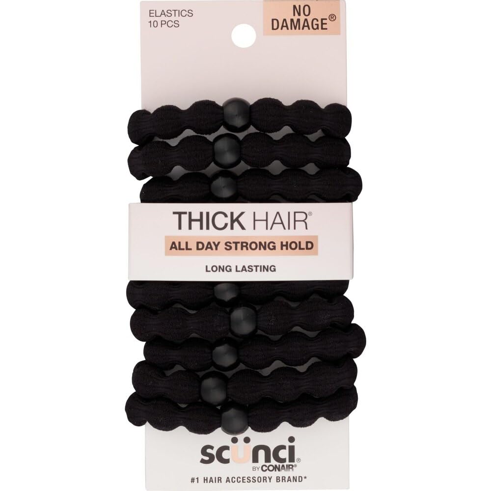 These Scunci Thick Hair Elastics Beaded Hair Ties are specifically designed for those with thick hair. The durable and stretchy material ensures a secure and comfortable hold that won't slip or break. The added beads provide a stylish touch, making them both functional and fashionable.