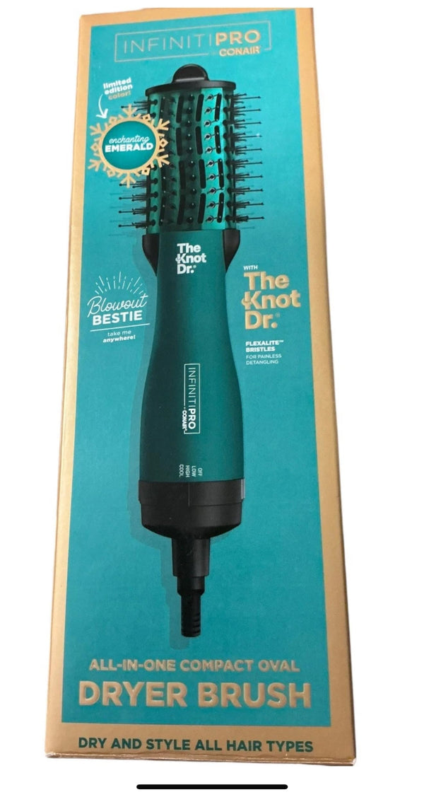 Infiniti Pro by Conair The Knot Dr, All-in-One Compact Oval Hair Dryer Brush, Limited Edition Emerald, 700W