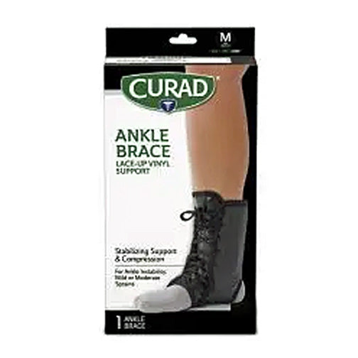 This Curad Vinyl Lace-Up Ankle Brace in size small provides reliable support for those with ankle injuries or chronic instability. Its lace-up design allows for a customized fit, while the vinyl construction ensures durability. Perfect for active individuals looking to prevent or recover from ankle injuries.