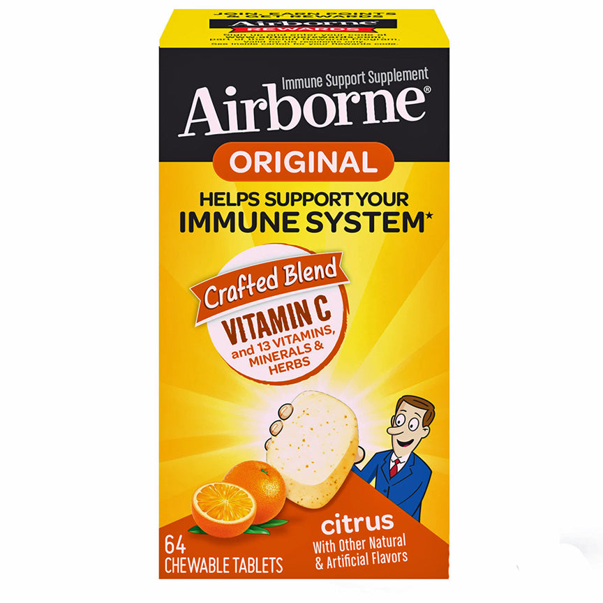 Boost your immune system with Airborne Vitamin C Citrus Chewable Tablets. Each tablet contains 1000mg of Vitamin C to help support your body's natural defenses. The delicious citrus flavor makes taking your daily dose a breeze. Stay healthy and protected with Airborne Vitamin C Chewable Tablets.
