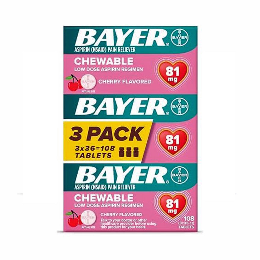 As a trusted pain reliever, Bayer Aspirin Low Dose 81 mg Chewable Tablet in cherry flavor provides fast, effective relief. With a low dose and chewable form, it's gentle on your stomach and easy to take. Get the relief you need without the hassle.