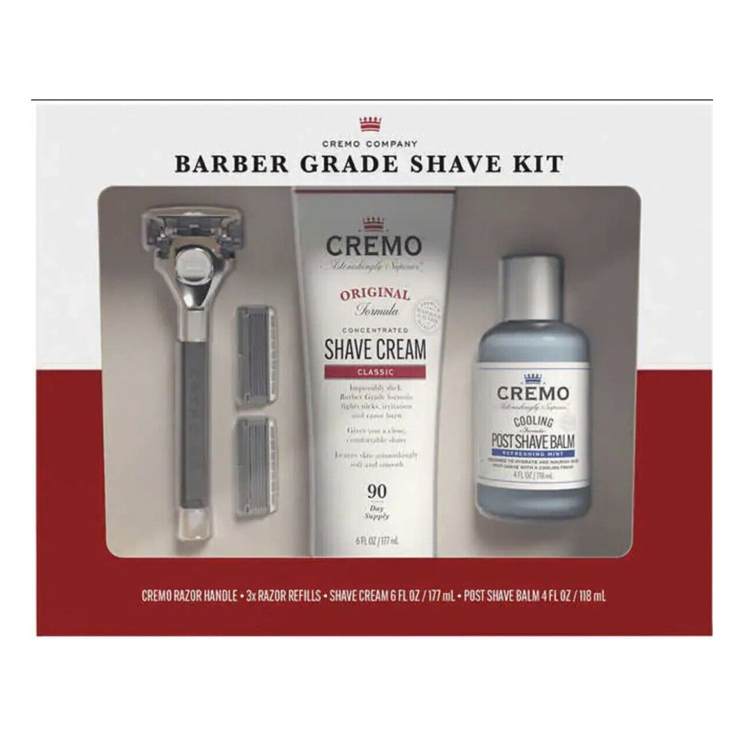 Expertly crafted for a premium shaving experience, the Cremo Barber Grade Shave Kit White seamlessly combines exceptional tools for a precise, close shave. Elevate your routine with this high-quality kit, featuring trusted products that deliver impressive results. Make this a staple in your grooming arsenal.