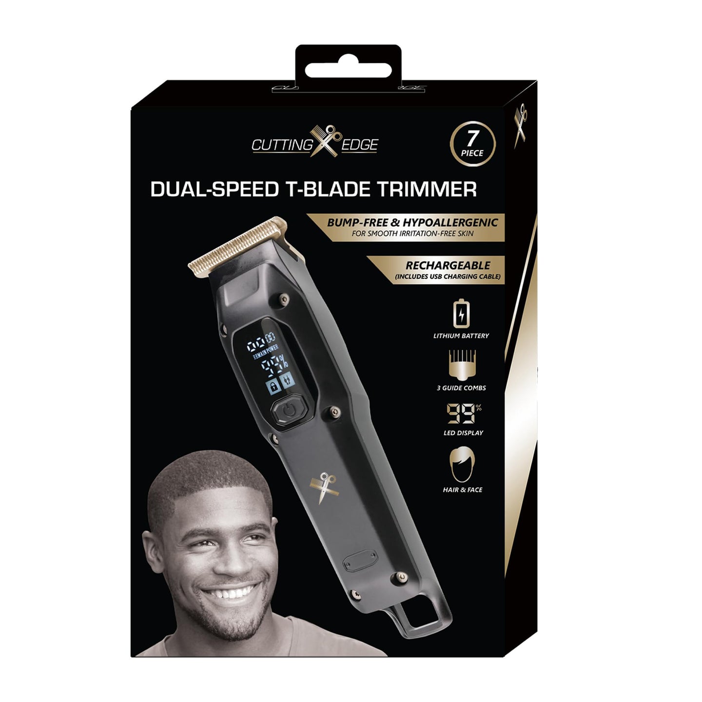 As a trusted tool in men's grooming, the Cutting Edge T-Blade Trimmer offers precision and control with its T-blade design. Ideal for trimming beards, mustaches, and hairlines, this trimmer delivers a professional finish with every use. Its cutting edge technology ensures a smooth and efficient trimming experience.