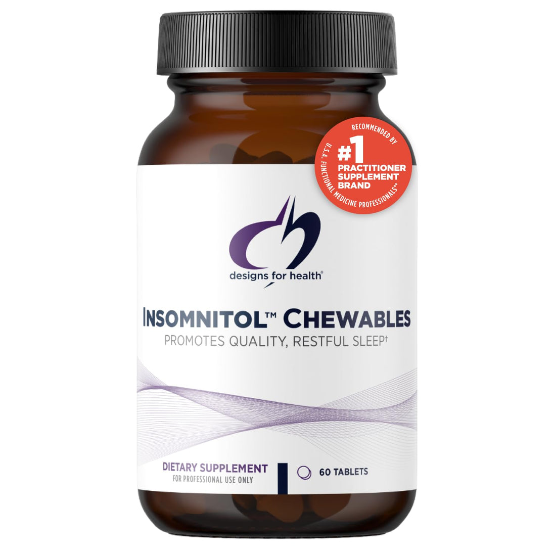 Designs for Health Insomnitol Chewables - the perfect chewable solution for your sleepless nights. With a powerful blend of melatonin, L-theanine, 5-HTP, vitamin B6 and inositol, our delicious lemon flavored supplement aids in promoting restful sleep. Vegan-friendly and easy to consume, our chewables provide an effective and natural way to combat insomnia.