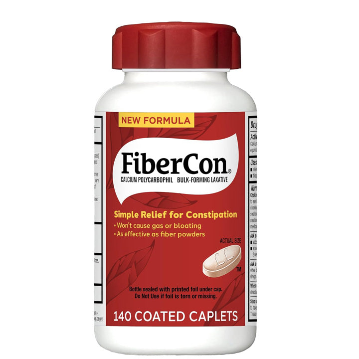 FiberCon is just as effective as fiber powders for regaining bowel irregularity but provides a more convenient choice in easy-to-swallow coated caplets. FiberCon is 100% insoluble fiber that provides constipation relief by simply drawing water into the stool. FiberCon is safe and effective for adults and children 12 years or older and generally produces a bowel movement in 12-72 hours, and since the insoluble fiber in FiberCon does not ferment it will not cause uncomfortable intestinal gas or bloating. Trust FiberCon as your convenient and comfortable option to relieve occasional constipation and feel like yourself again!