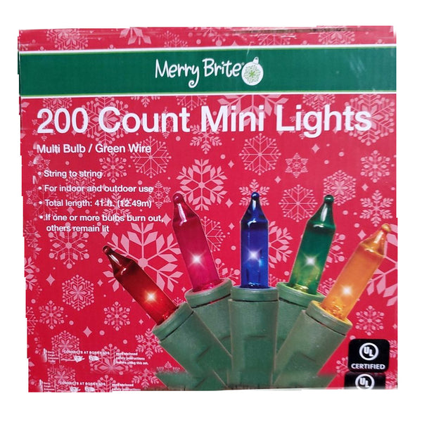 Merry Brite Mini Christmas Lights Clear Bulb 200 ct Indoor Outdoor 41 ft