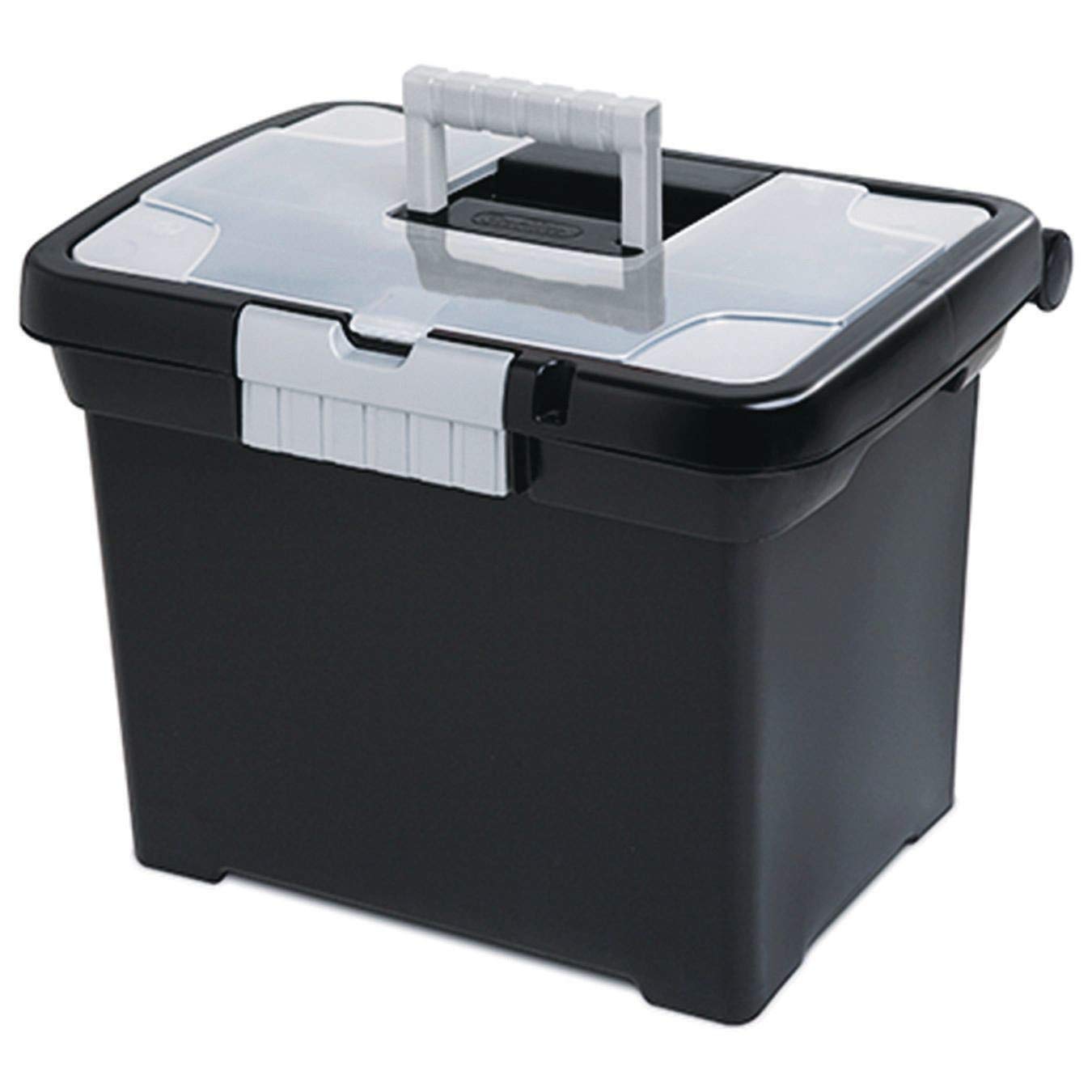 This STERILITE Portable File Box offers a convenient and organized way to store and transport your important documents. With its black design and durable construction, it provides a professional and secure solution for any business or personal needs. Its compact size and portability make it a must-have for any busy individual.
