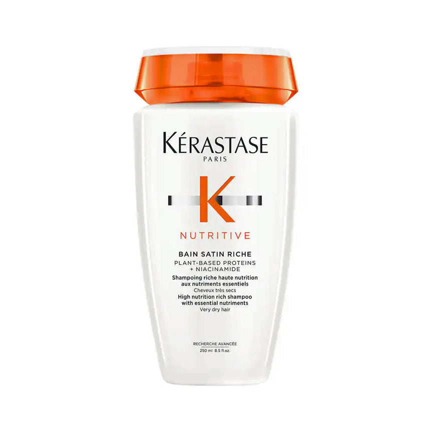 Experience nourished and hydrated hair with Kerastase Nutritive Bain Satin Riche Shampoo. This 8.5 oz shampoo gently cleanses and replenishes dry and damaged hair, leaving it soft, silky, and manageable. Formulated with nourishing ingredients, it provides deep moisture and helps improve hair's overall health. Say hello to beautifully nourished locks with Kerastase Nutritive Bain Satin Riche Shampoo.