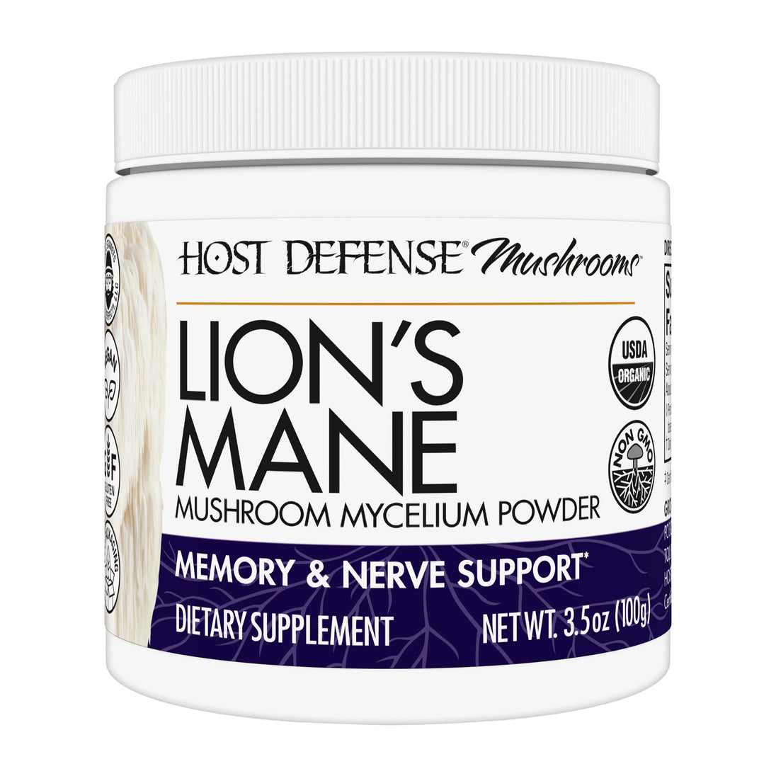 Enhance your brain health with Host Defense Lion's Mane Powder. This supplement is formulated with certified organic lion's mane mushrooms, known for their potential to support cognitive function and nerve health. With no artificial ingredients, this powder provides a natural and effective way to promote your brain's well-being.