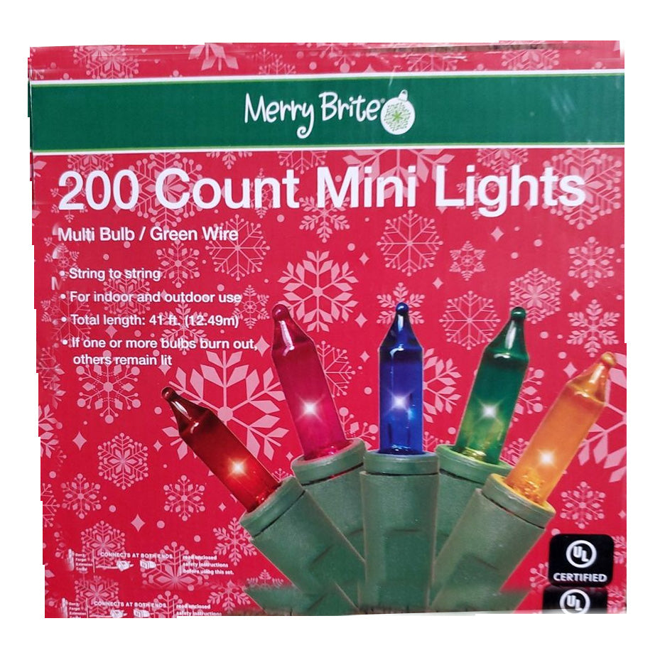 • Merry Brite Mini Christmas Lights Clear Bulb 200 ct Indoor Outdoor 41 ft