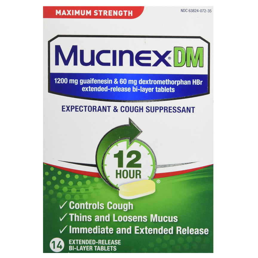 • Mucinex DM Maximum Strength 12-Hr Expectorant & Cough Suppressant Tablets 14 ct