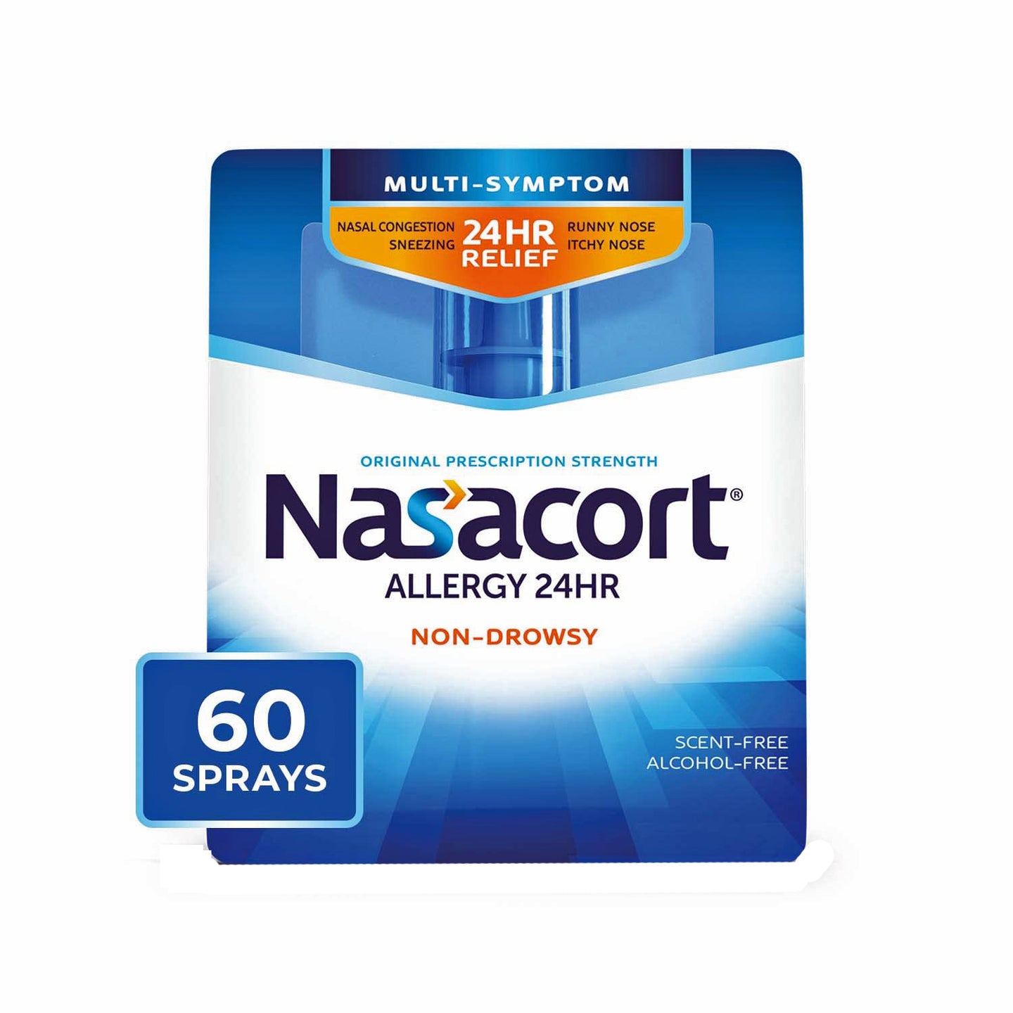 Nasacort 24HR Allergy Nasal Spray provides 24-hour relief from indoor and outdoor allergies. With a powerful formula that contains triamcinolone acetonide, it effectively relieves a wide range of allergy symptoms including nasal congestion, sneezing, and runny nose. Get fast-acting relief and take back your day with Nasacort.