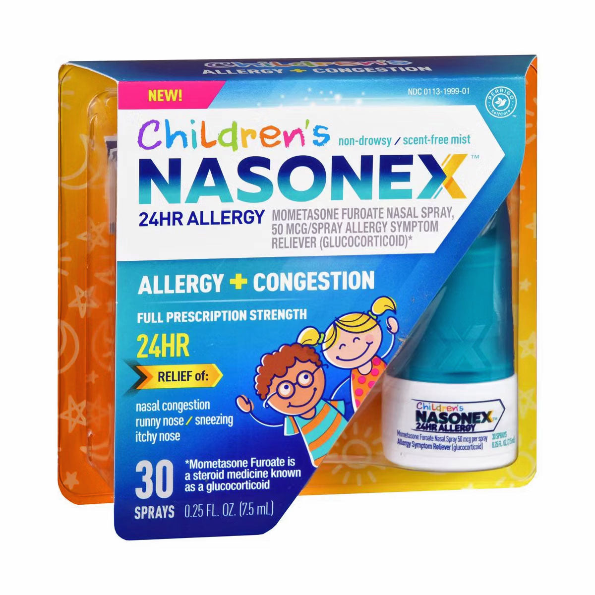 Nasonex Children's nasal spray delivers 24-hour relief from allergy symptoms and nasal congestion in a pediatric-formulated solution. This 0.25 oz spray contains mometasone furoate, a corticosteroid that reduces inflammation and swelling in the nasal passages. Designed specifically for children, it helps alleviate sneezing, itching, and stuffiness caused by seasonal or year-round allergies. The convenient metered-dose delivery ensures consistent, controlled application. Fast-acting and long-lasting, this trusted formula provides effective symptom management throughout the day and night, helping