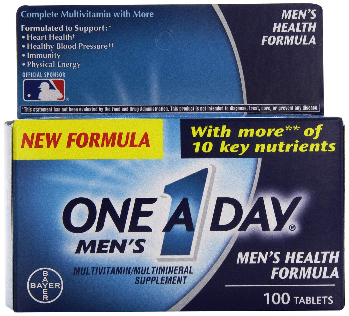 This daily multivitamin is specially designed to address key health concerns of men. This easy to take tablet contains Vitamins A, B6, B12, C, D, E, and K, Riboflavin, Thiamin, Niacin, Folic Acid, Pantothenic Acid, Zinc, Manganese, Biotin, Magnesium, Copper, Lycopene, Calcium, Selenium, and Chromium. One A Day Men's Health Formula Multivitamin is Formulated to support: heart health, healthy blood pressure, immune health, healthy muscle function, and physical energy by helping convert food to fuel.