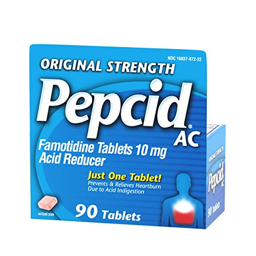 Expertly formulated with active ingredient famotidine, Pepcid AC Original Strength Heartburn Relief tablets provide fast-acting relief for heartburn, acid indigestion, and sour stomach. This trusted formula blocks acid production, giving you up to 12 hours of relief. Trust Pepcid AC for effective and reliable heartburn relief.