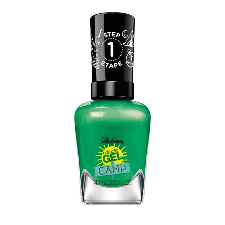 Experience the long-lasting, gel-like shine of Sally Hansen Miracle Gel™ in the tranquil shade of Summer Camp Wanderlush Green. This innovative formula offers up to 8 days of wear and no UV/LED light needed. Perfect for adding a pop of color to your summer look!